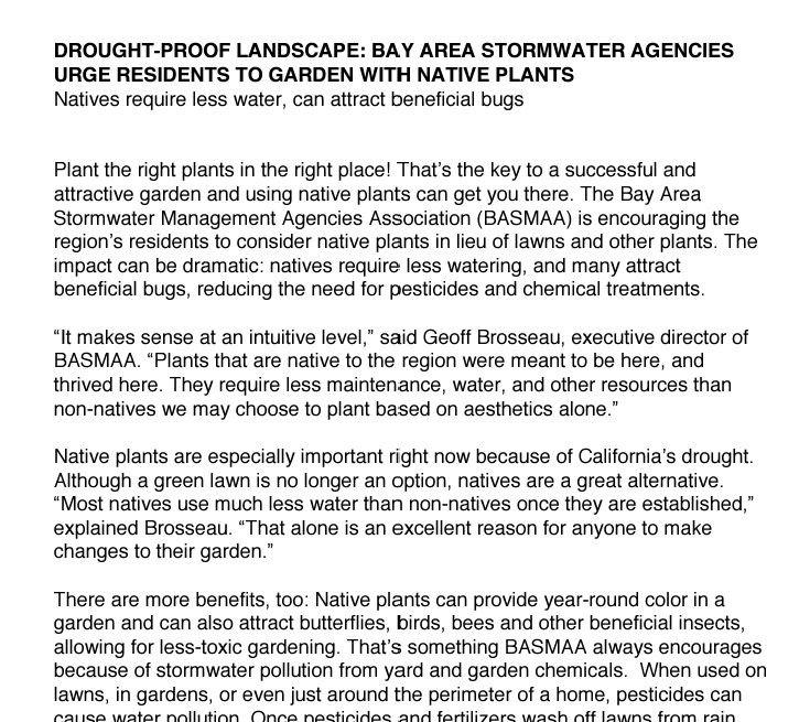 Drought-Proof Landscapes – Bay Area Stormwater Agencies Urge Residents To Garden With Native Plants.