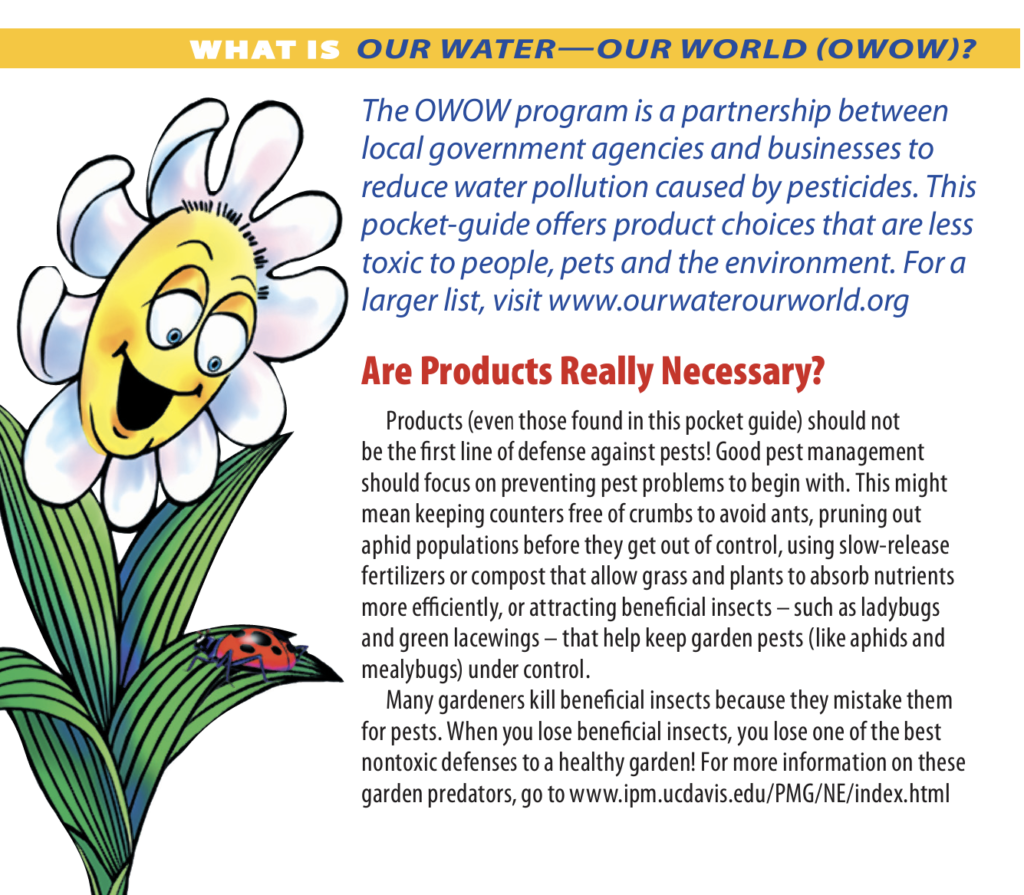 Pocket Guide – This pocket-guide offers product choices to handle pests that are less toxic to people, pets and the environment.